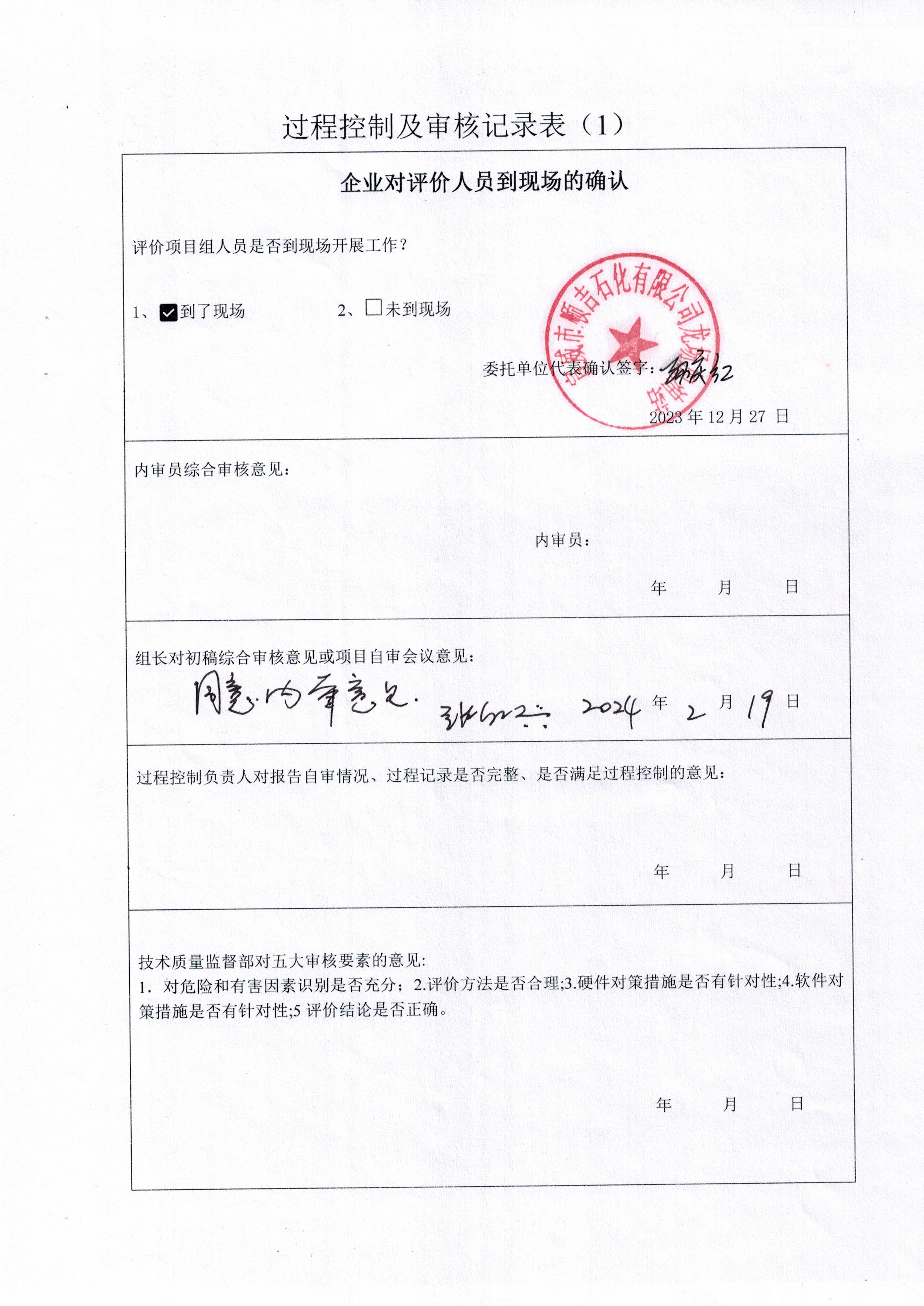 過程控制審核 | 內(nèi)審意見(√ 通過 口 不通過 ) √ 是 口 否 | |||||||