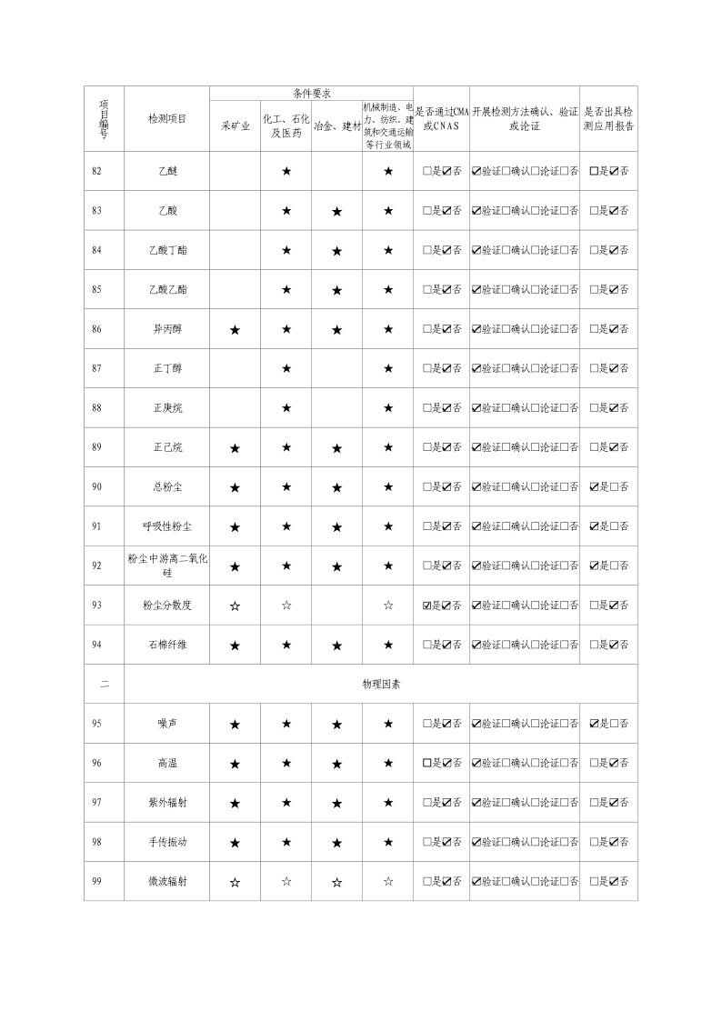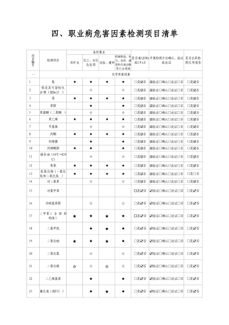 2024年職業(yè)衛(wèi)生技術(shù)服務(wù)機構(gòu)資質(zhì)證書及職業(yè)病危害因素檢測項目清單