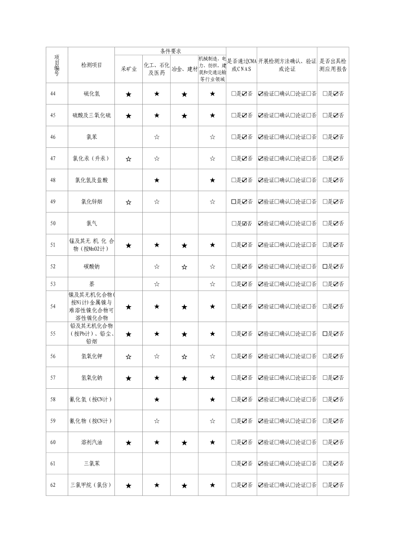 經(jīng)技術(shù)評審審核認定的檢測項目(第一類業(yè)務(wù) 合計110項)