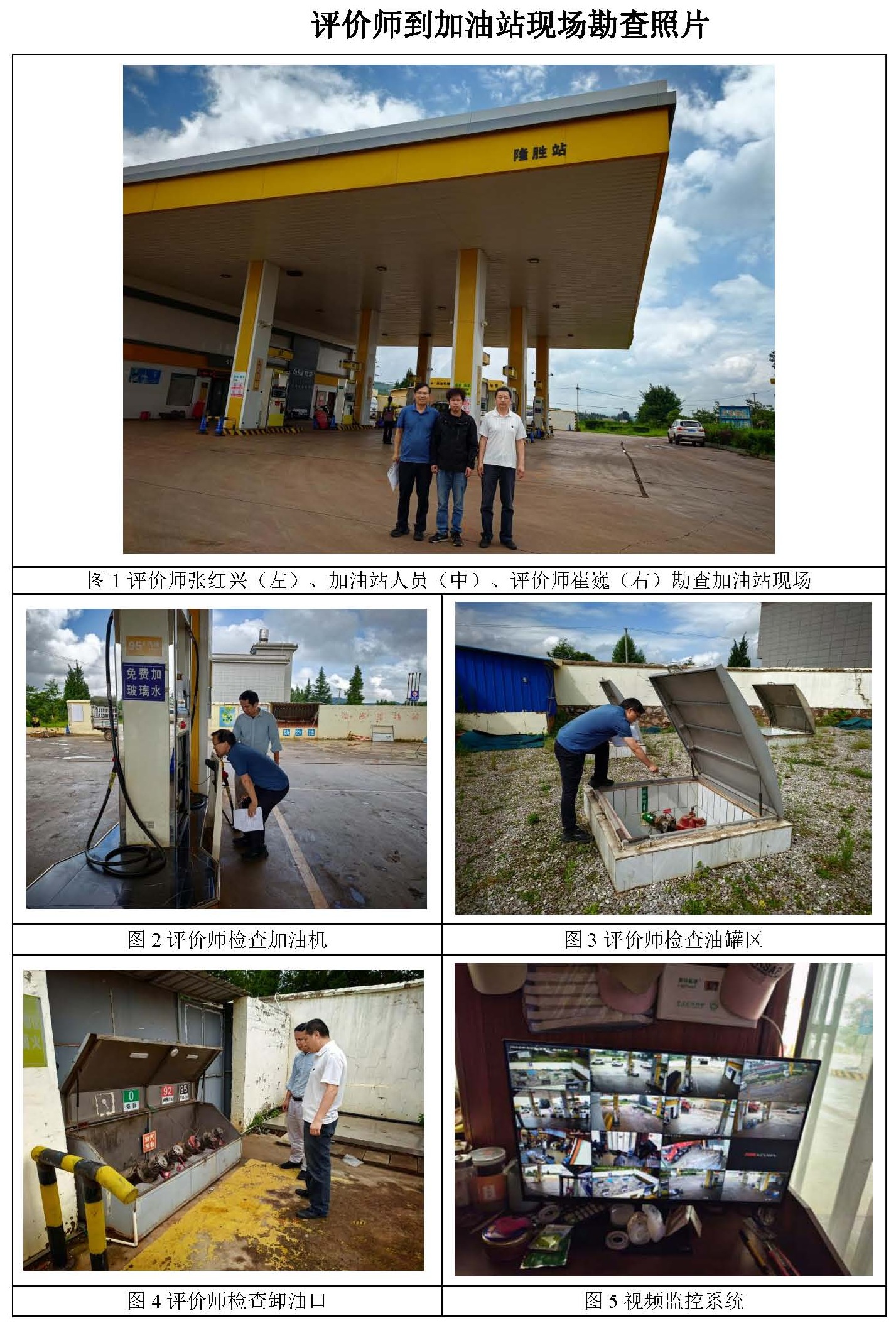 現(xiàn)場勘查情況 | 無人機(jī)航拍加油站及周邊平面照片,查看加油站周邊環(huán)境,查看加油區(qū)、油罐區(qū)、液位計、配電室現(xiàn)場情況,查看安全管理資料。 | |||||||