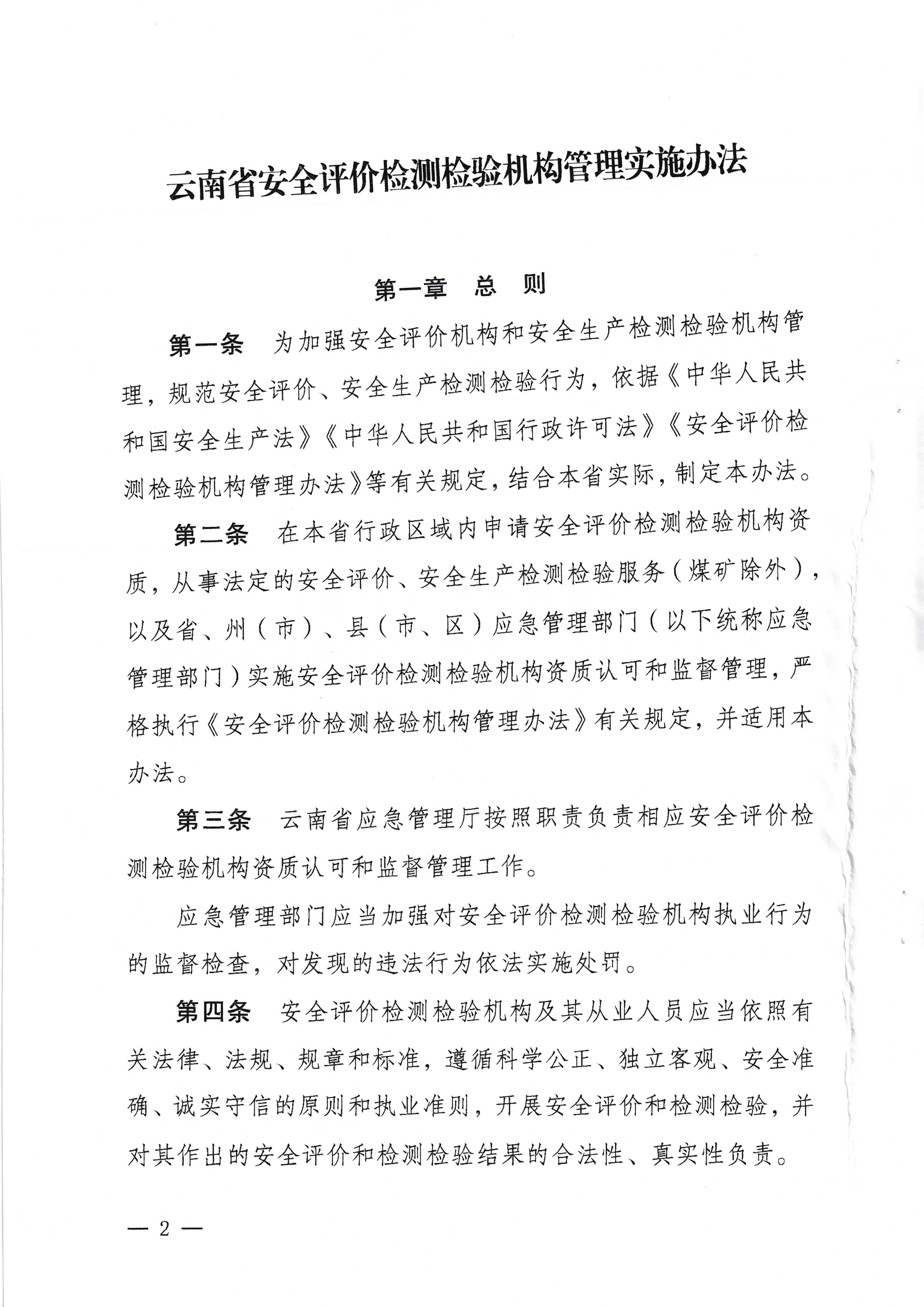 云南省應(yīng)急管理廳關(guān)于印發(fā)云南省安全評價(jià)檢測檢驗(yàn)機(jī)構(gòu)管理實(shí)施辦法的通知